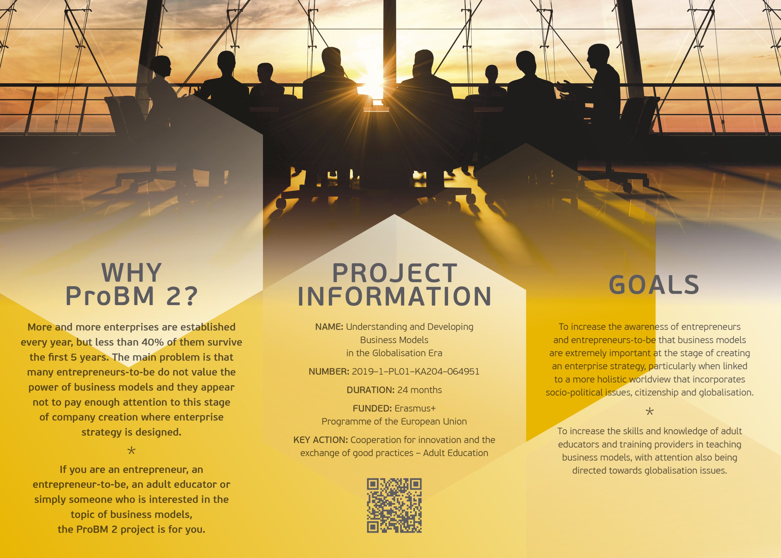 Each year, more and more enterprises are established, but less than 40% of them manage to survive the first 5 years. The main problem is that many entrepreneurs-to-be do not value the power of business models and seem not to pay enough attention to this stage of a company creation. If you are an entrepreneur, an entrepreneur-to-be, an adult educator or simply a person interested in the topic of business models, the ProBM 2 project is for you. |